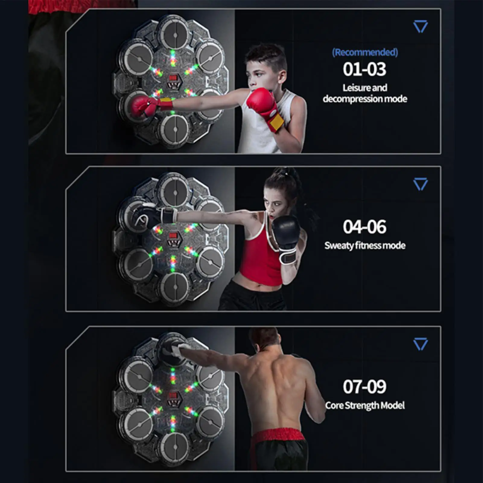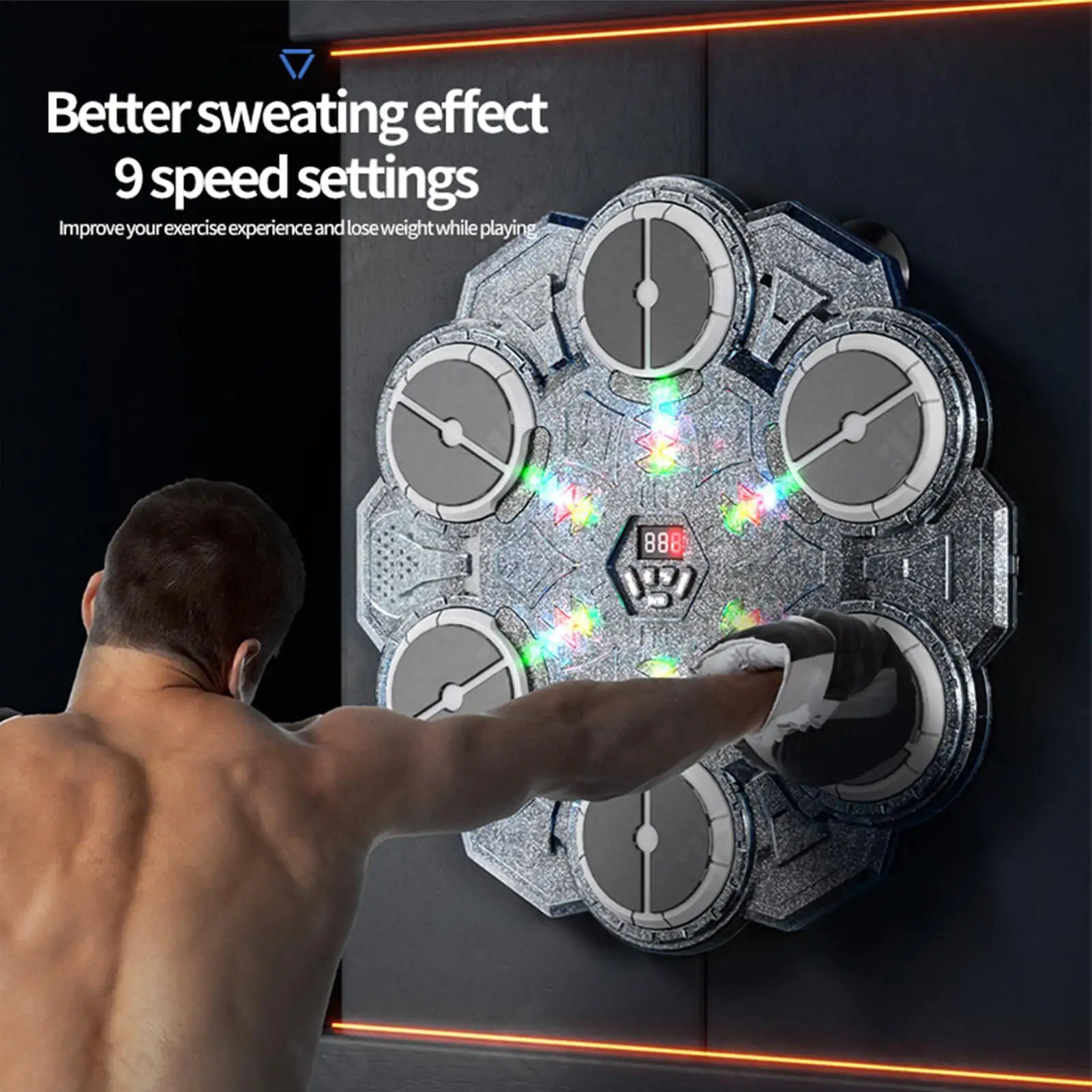 2.Training Enhancement: The music boxing machine supports 9-speed modes and dynamic intensity adjustment, delivering a progressive physical challenge that boosts reaction speed and optimizes workout efficiency