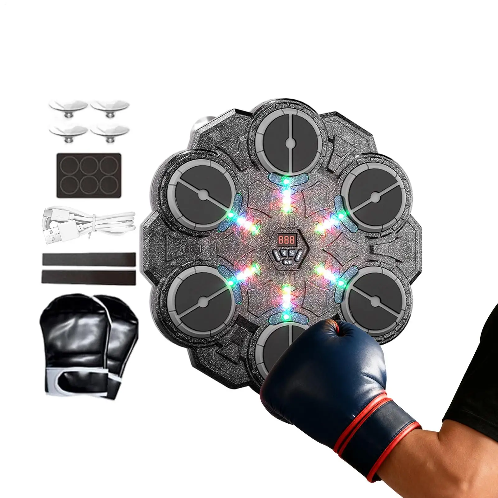 3.Heavy-duty Material: The music boxing machine integrates responsive LED lights that brighten with every punch, blending functionality with spatial enhancement to deliver an enjoyable yet sturdy solution for home gyms